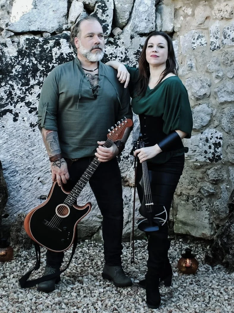 Eva Febrer — violín eléctrico Formada en interpretación histórica y con trayectoria internacional, Eva aporta rigor musical y una fuerte presencia escénica. Su experiencia en repertorio antiguo se transforma en una voz contemporánea que combina técnica, intensidad y expresividad. El violín se convierte en instrumento protagonista: melódico, rítmico y atmosférico al mismo tiempo. Jairo Carreras — guitarra y voces Con una sólida trayectoria en el ámbito del directo, Jairo combina guitarra eléctrica y voz con una interpretación carismática y versátil. Su trabajo aporta estructura, energía y profundidad al proyecto.