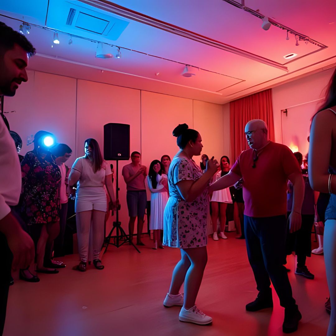 Una tarima es deseable. Micrófonos de diadema y altavoces son necesarios si es un evento de más de 30 personas.