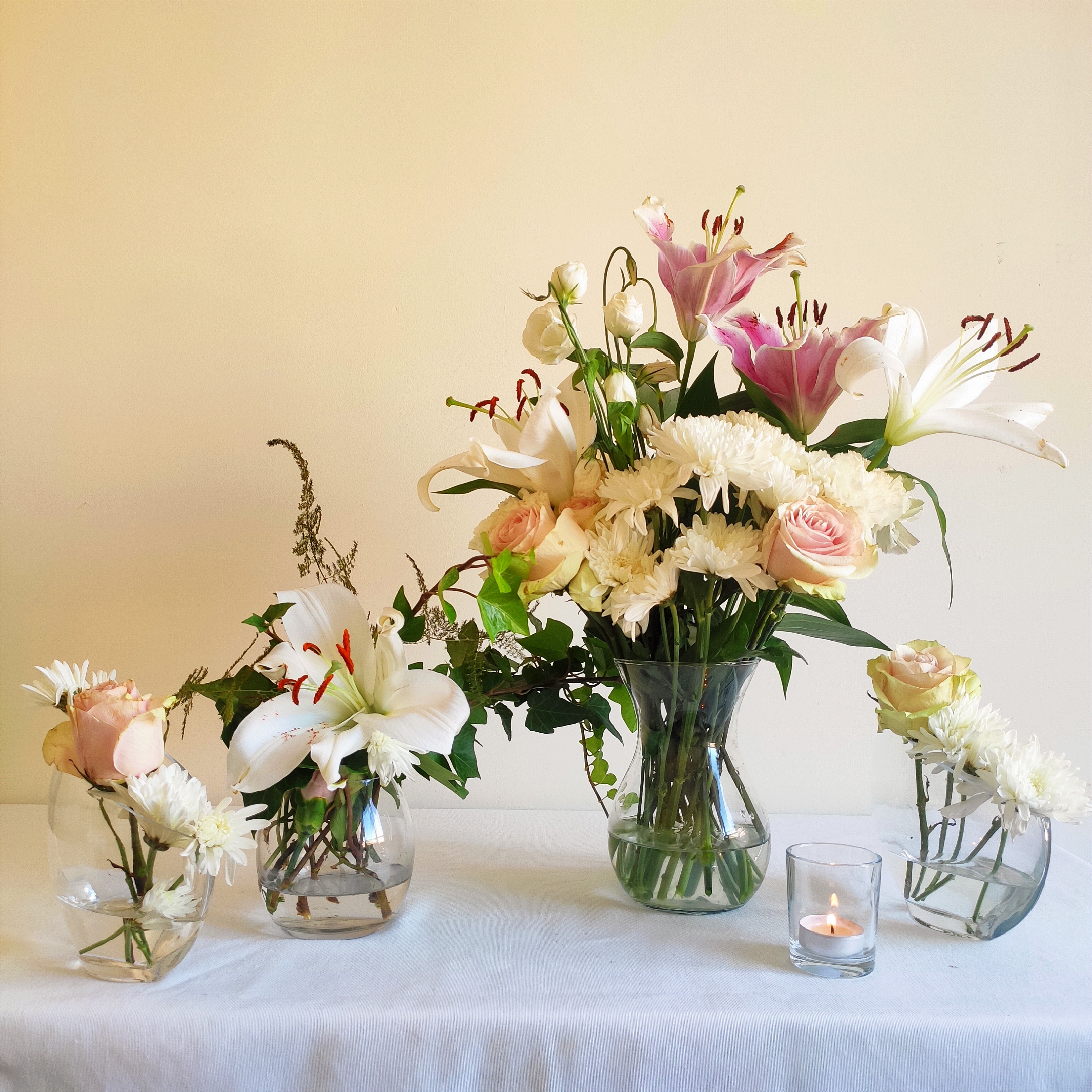 Decoración floral con flores naturales frescas y secas.…