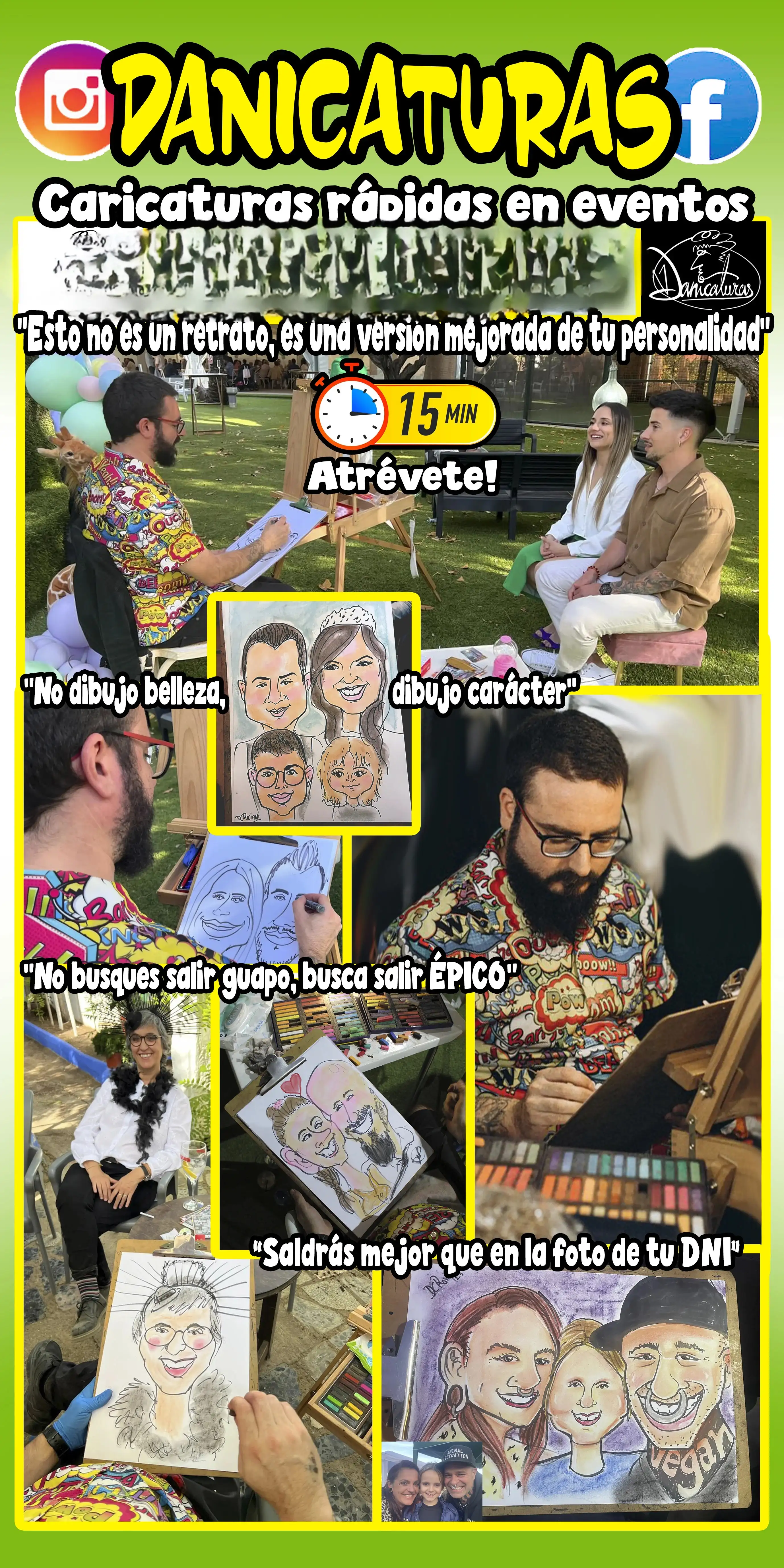 Dani es el único Caricaturista aunque cuenta con un par de socios que pueden cubrir eventos que se solapen o acompañar para eventos con muchos invitados